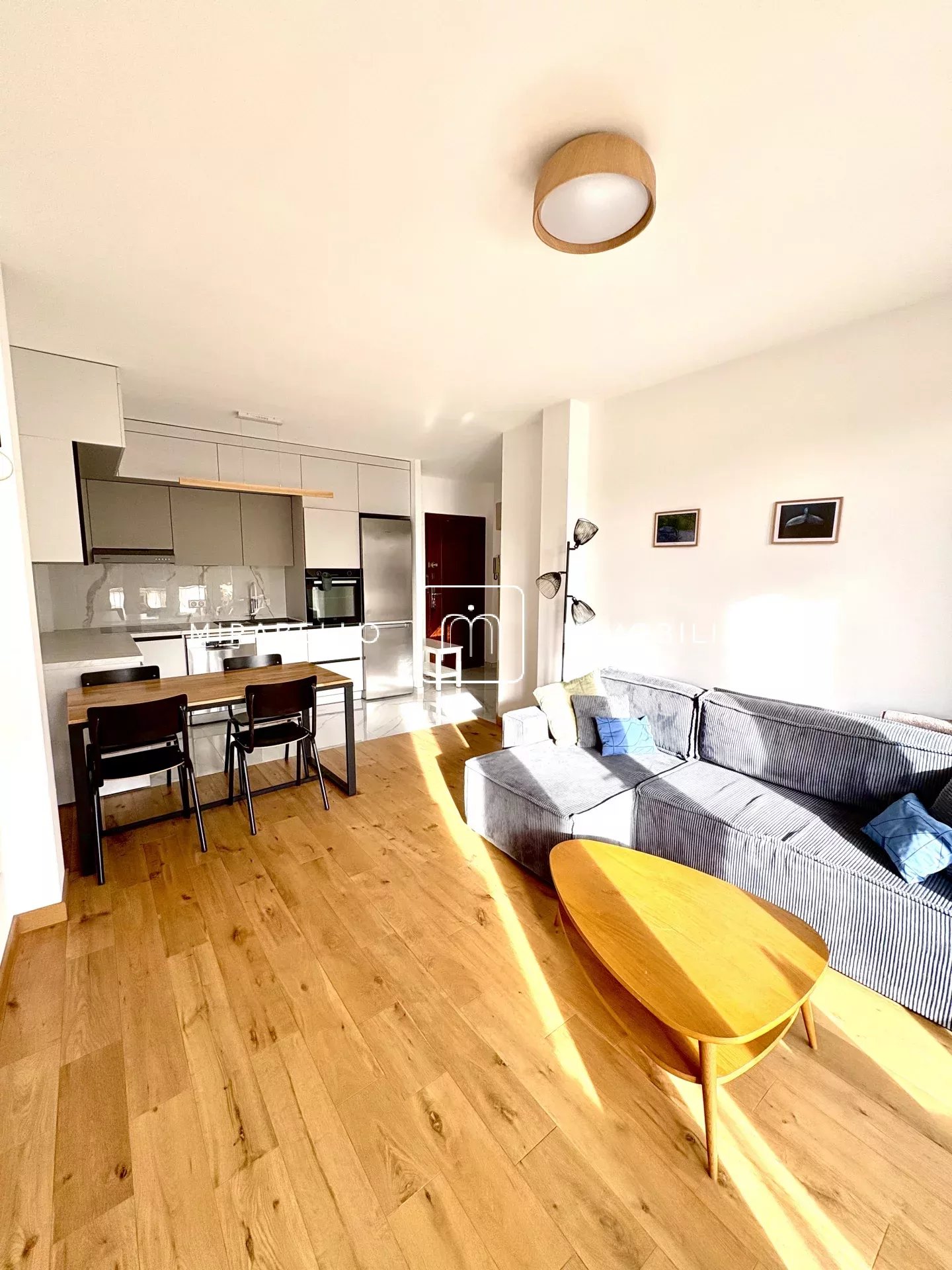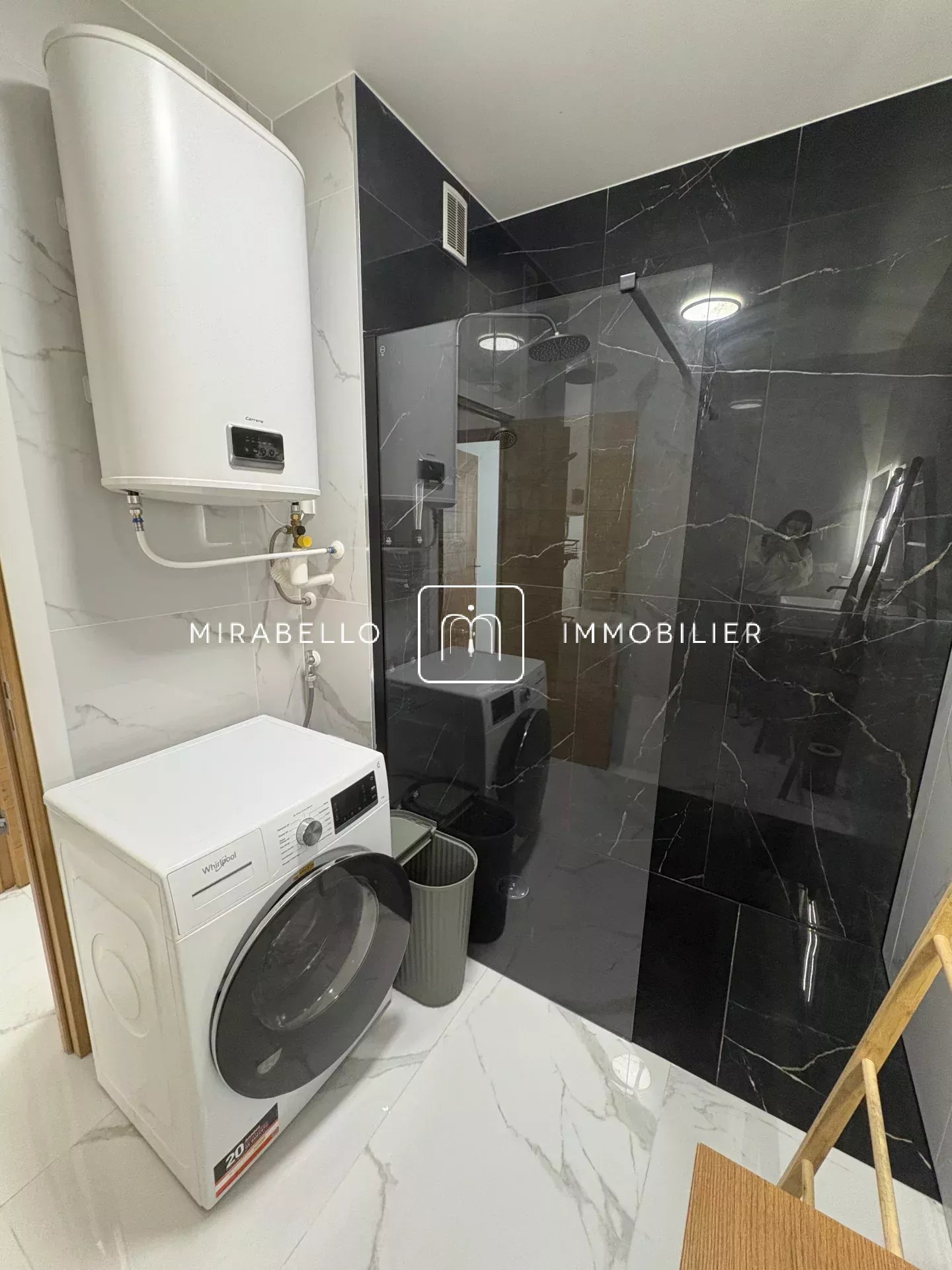 Il se compose d’une entrée spacieuse, d’un grand séjour lumineux avec cuisine équipée, de deux belles chambres avec dressing et d’une salle de douche moderne.