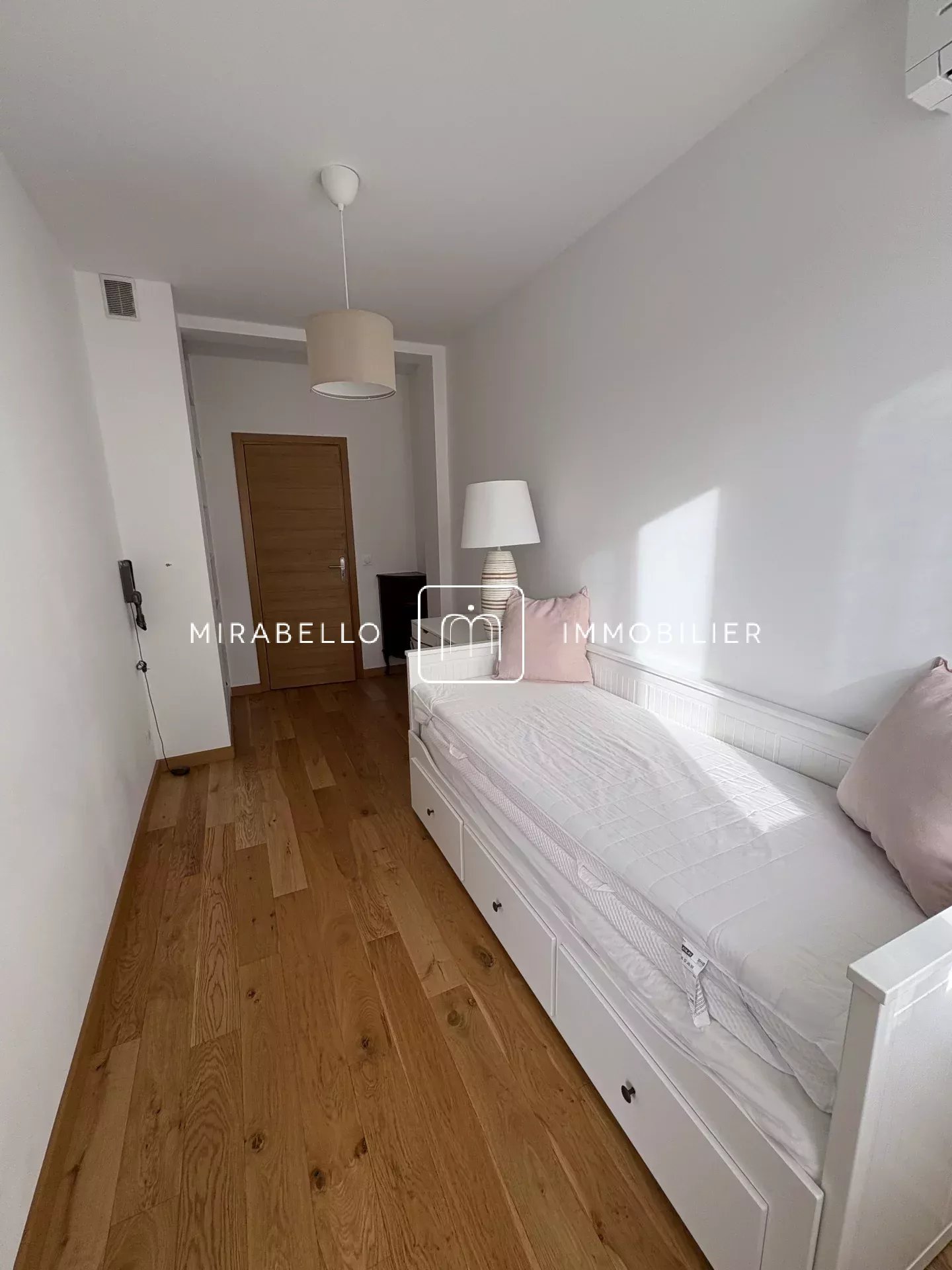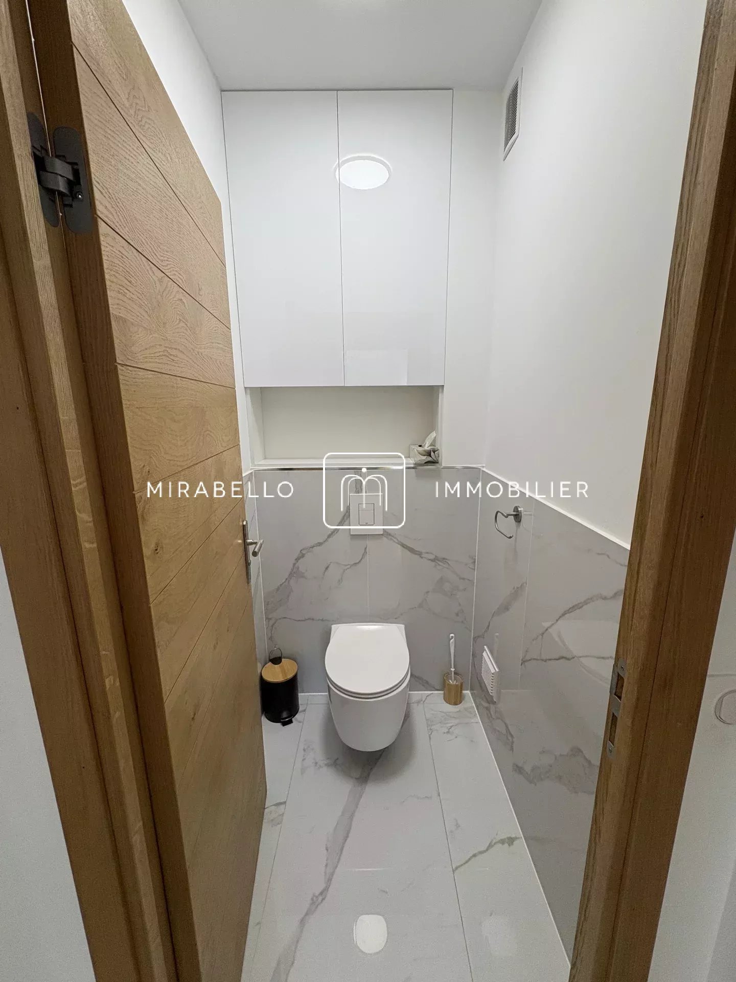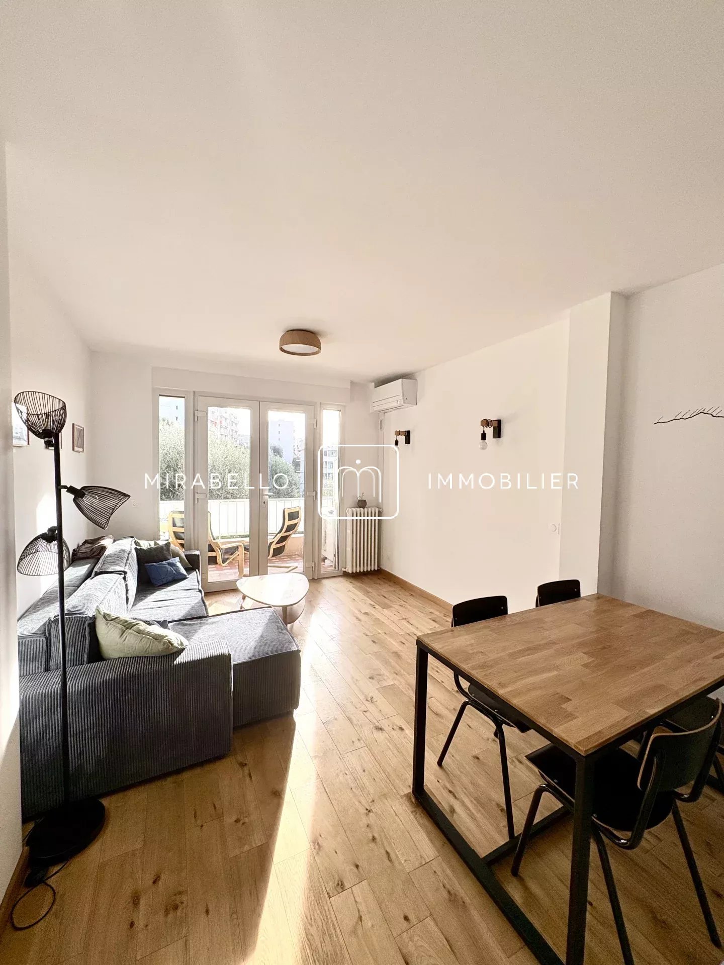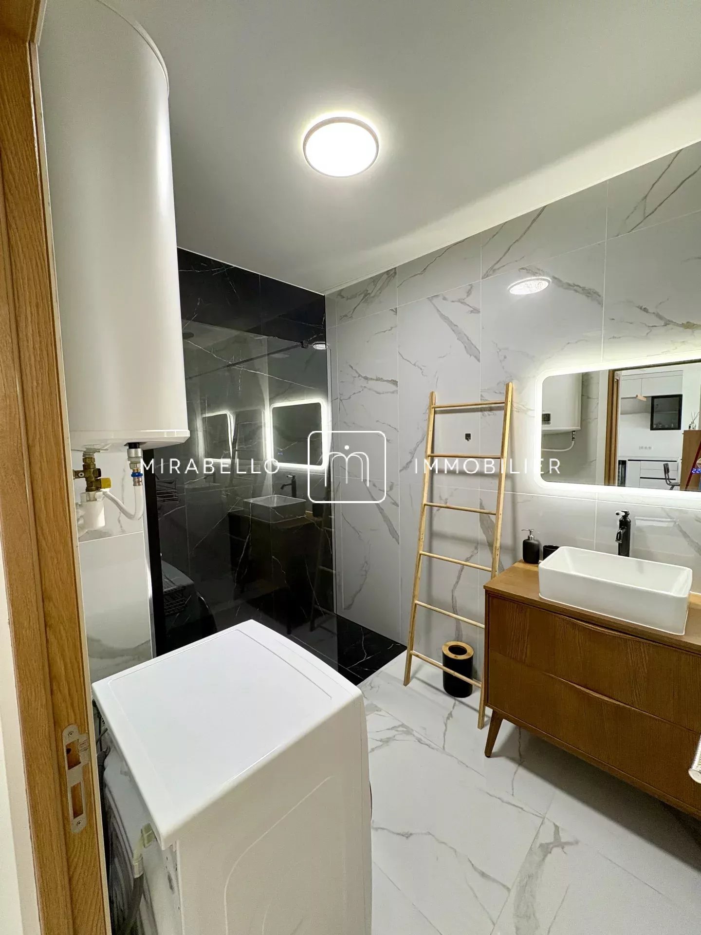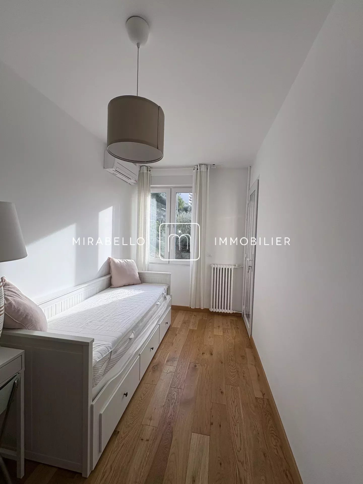 Magnifique appartement 3 pièces, entièrement rénové avec goût et entièrement climatisé. Situé au 1er étage d’un bel immeuble, il offre des prestations de qualité et un cadre de vie agréable.